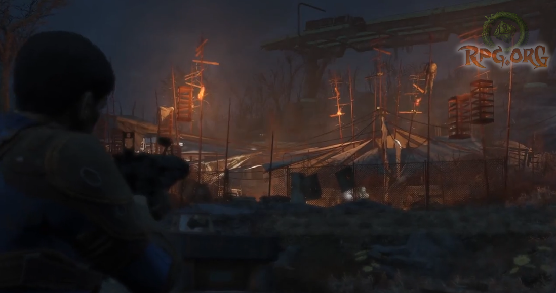 Finally after this you get to see some combat, including your canine friend ripping out some guys throat. I'm sure he deserved it. The character is then coaxed to help out a small group of survivors, and you get into a very epic suit and start destroying the opposition. Which includes a Deathclaw BURSTING from the ground. Cue epic showdown and shots of the all familiar but Fallout Famous VATS targetting system. Then you get to see more gorgeous imagery from the game. for obvious reasons I can't link you to the footage. So instead I've taken a few screenshots and made a few gifs so you can get a taste of the awesome imagery in the game. Enjoy!