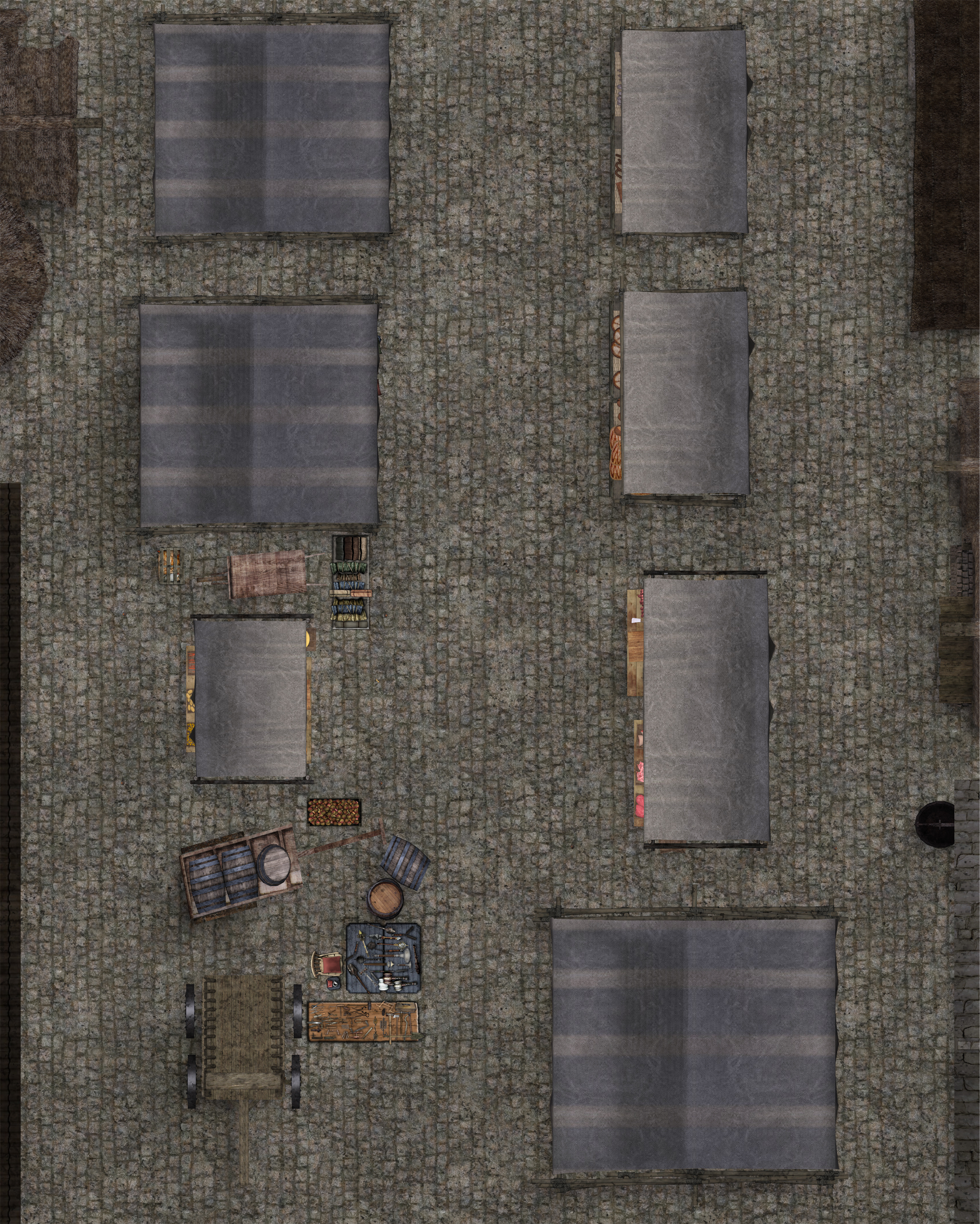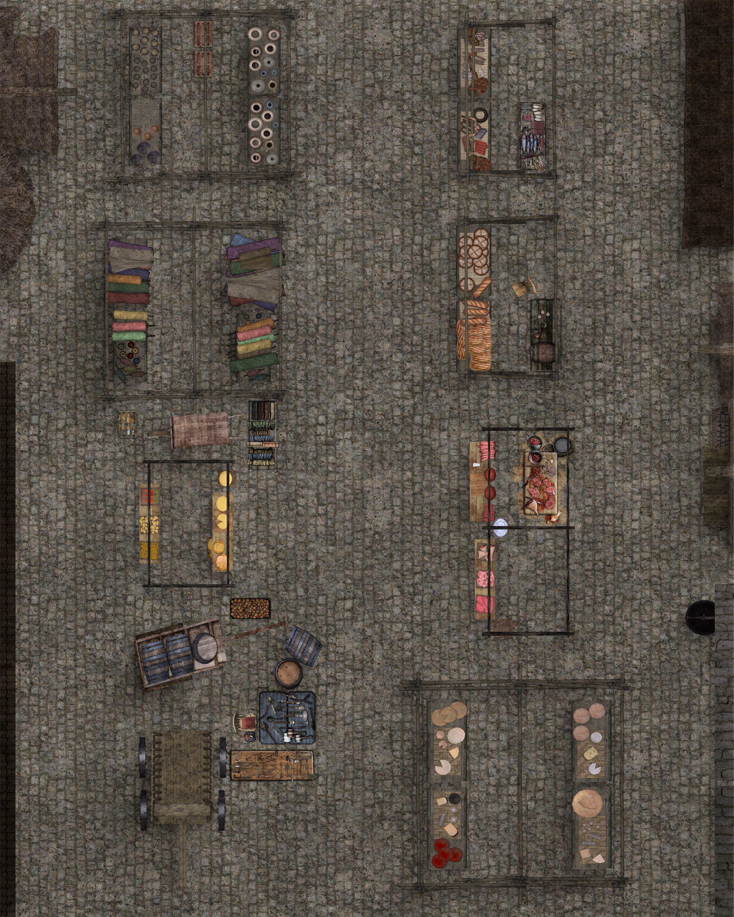 Where are the stalls? What kind of merchants? Etc. The Medieval is a 24 x 30 inch, full color floorplan of a Market, with Hex, Square and No overlay.